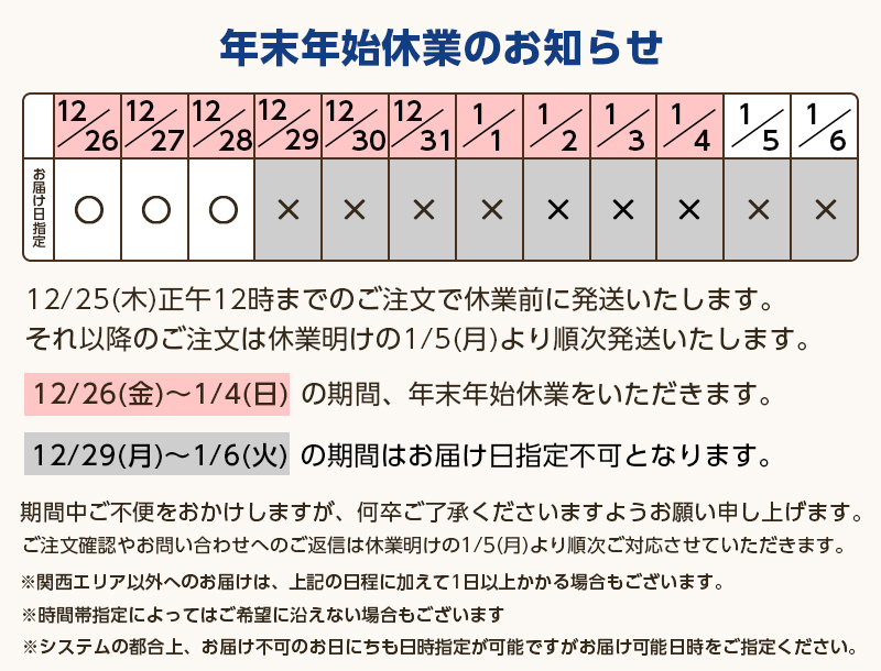 年末年始休業のお知らせ